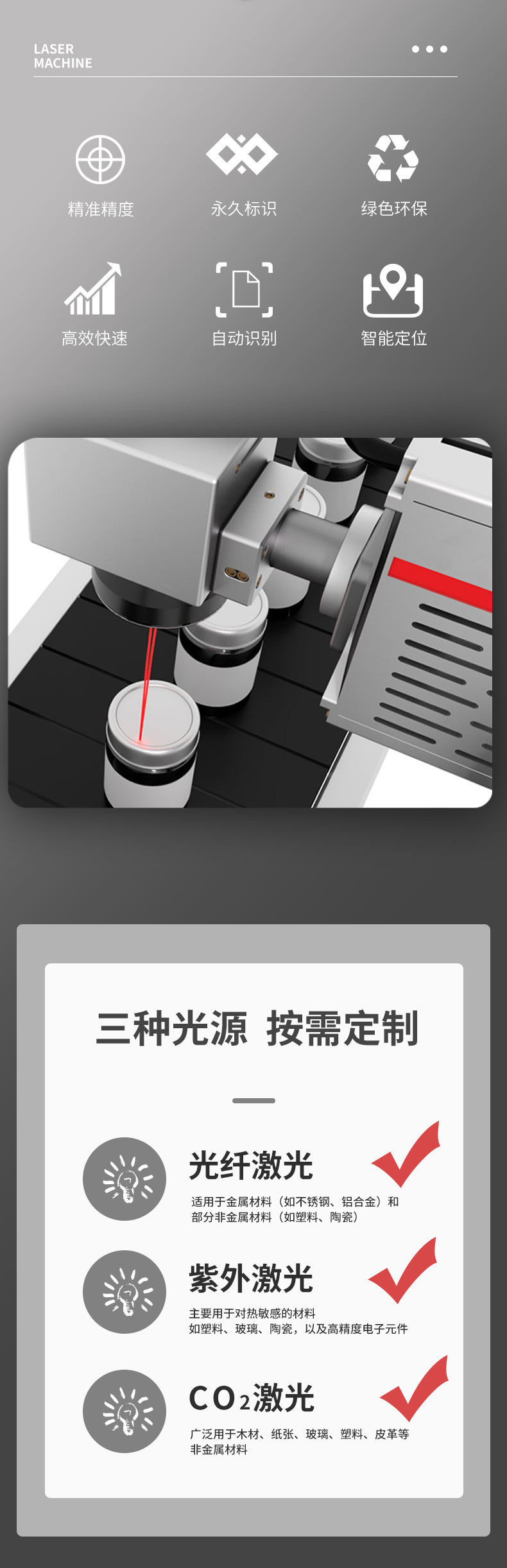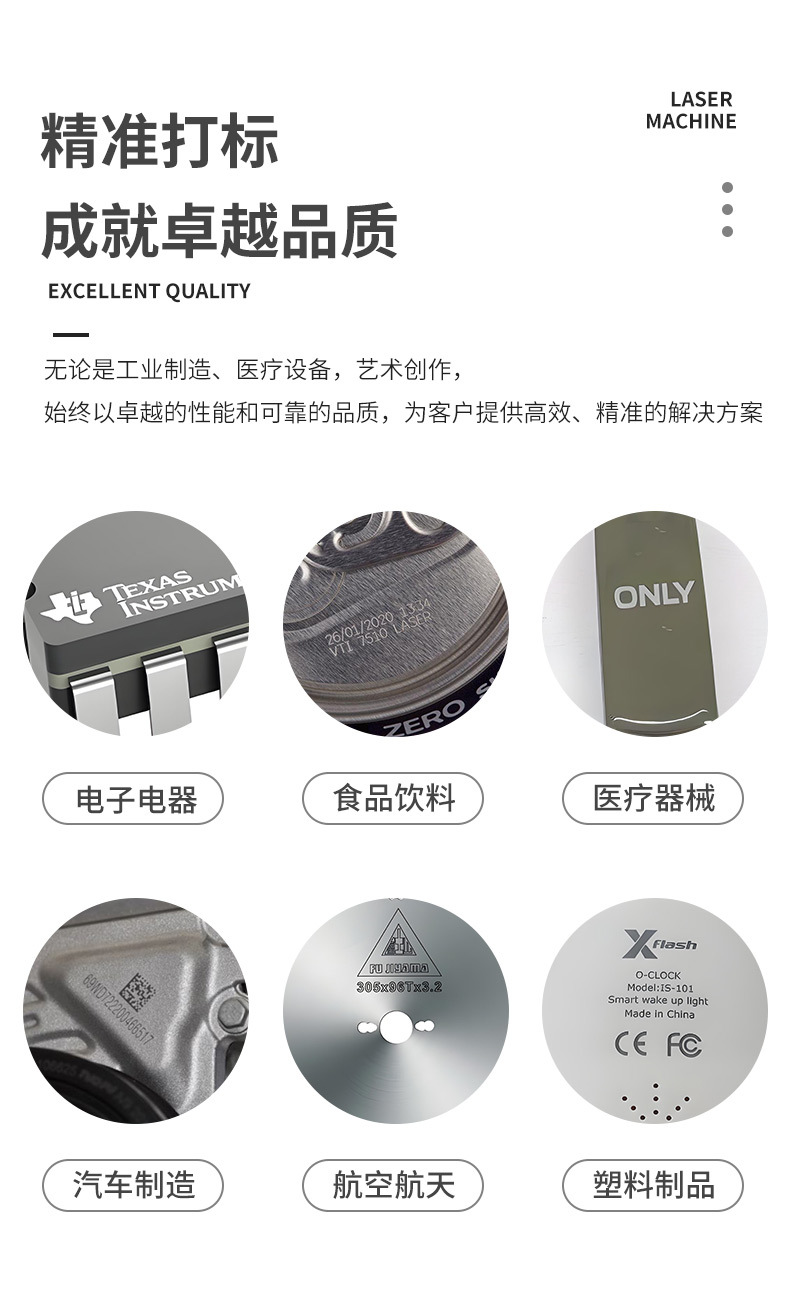 2、采用进口高速振镜,加工精度高,打标速度快,性能稳定;